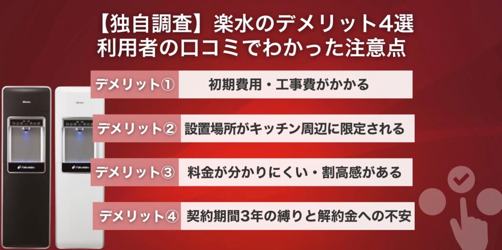楽水は長期利用で真価を発揮するウォーターサーバーのため、短期利用を想定している方には向かない可能性がありま