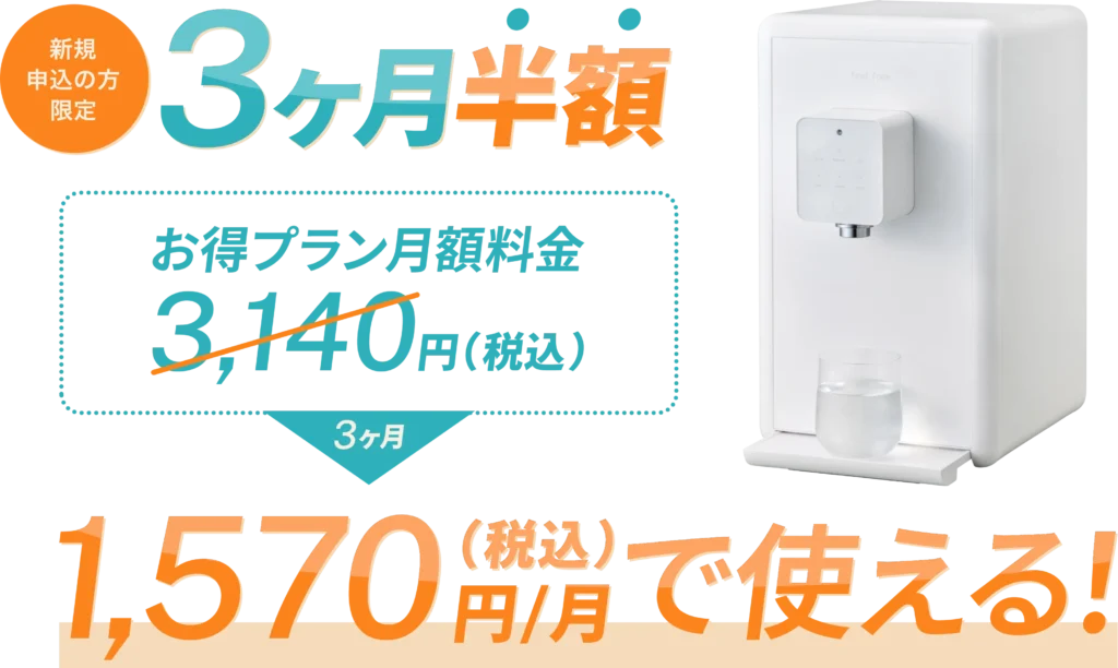 | 浄水型(定額制) | 2,580〜3,500円 | レンタル料のみ(水道代は別途) |