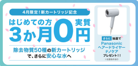 | おすすめ ポイント | ・小さくても充実の機能! ・浄水型で定額制 ・高いデザイン性 | ・契約期間の縛りなし ・業界最小クラスのスリムさ | ・月額2,580円で最安値級 ・フィルター交換も無料 |